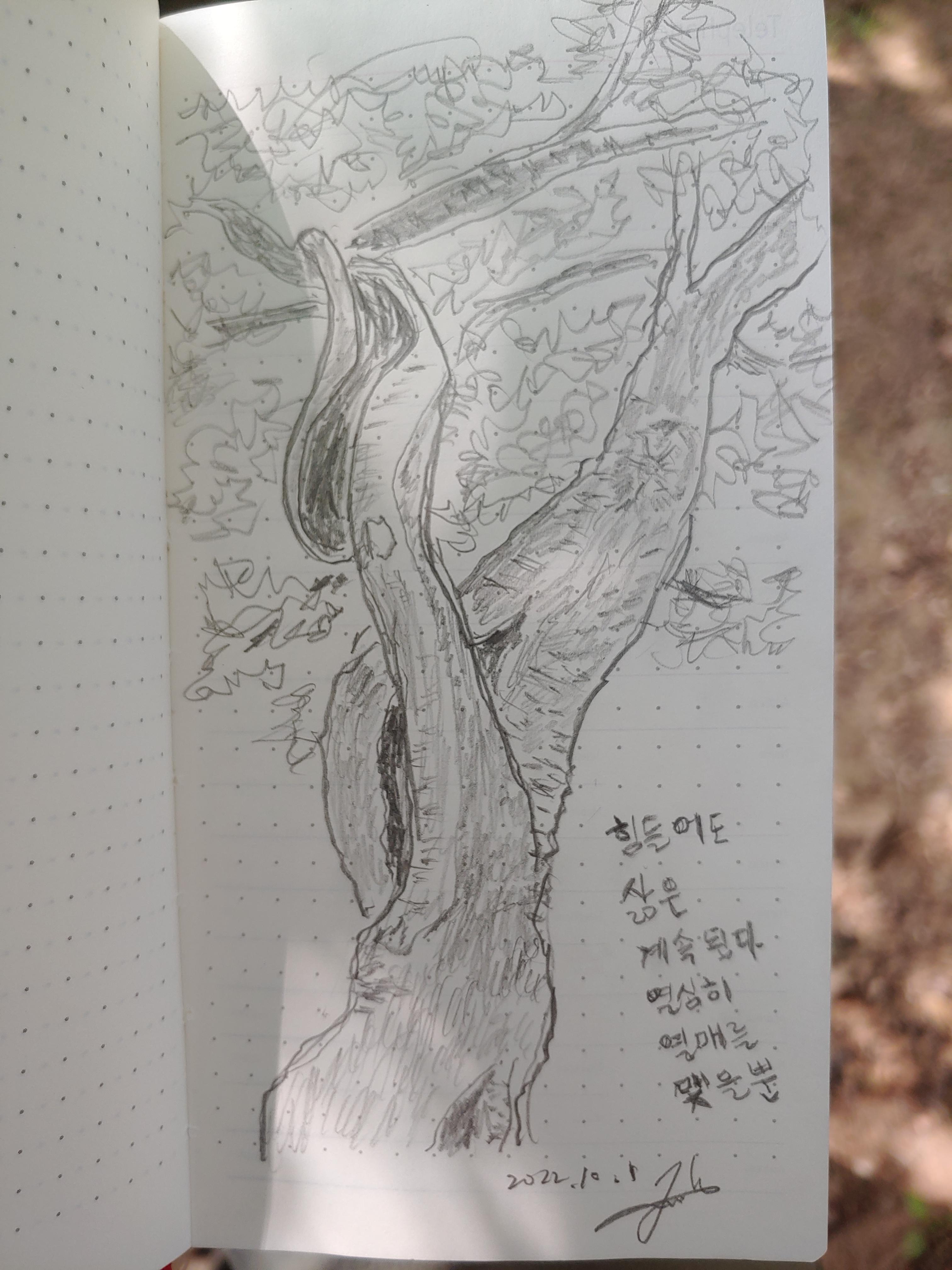수첩에 연필로 그림