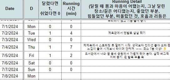 ■ 7월 운동 - 1/4주차 : 1주 목표 달성 - 초콜릿 or 아이스크림, 월 목표 달성 - 수제햄버거 or 수제빵 사먹기!