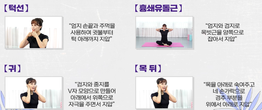 - 목 뒤와 얼굴의 순환에 영향을 주고, 얼굴 붓기 해소에 도움.