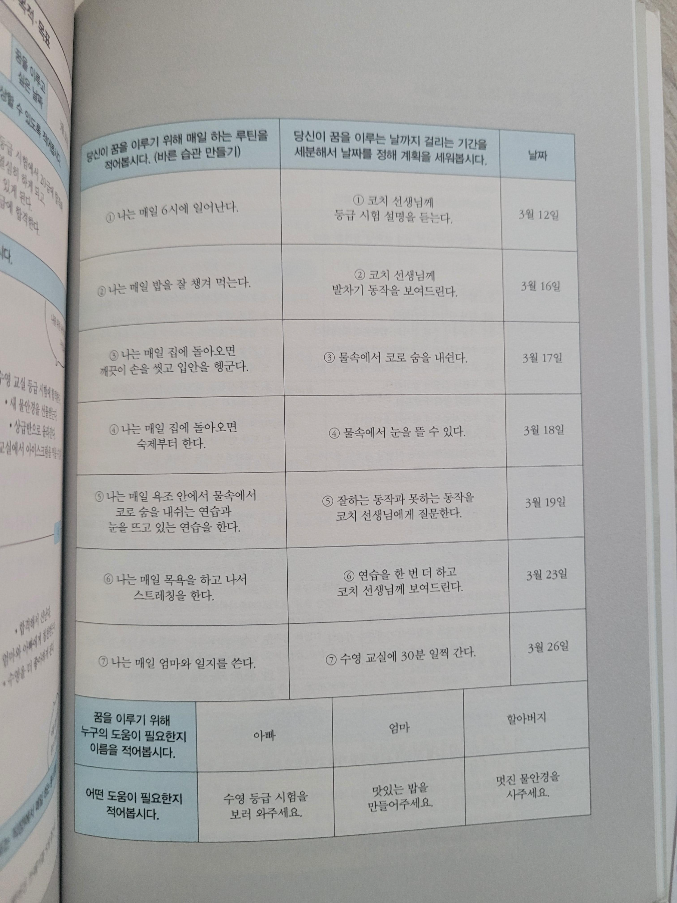 각 실천을 위해 도와줄 사람에게 요청해