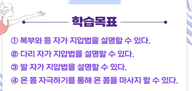 천천히 피부를 마찰하며 호흡과 함께 진행.
