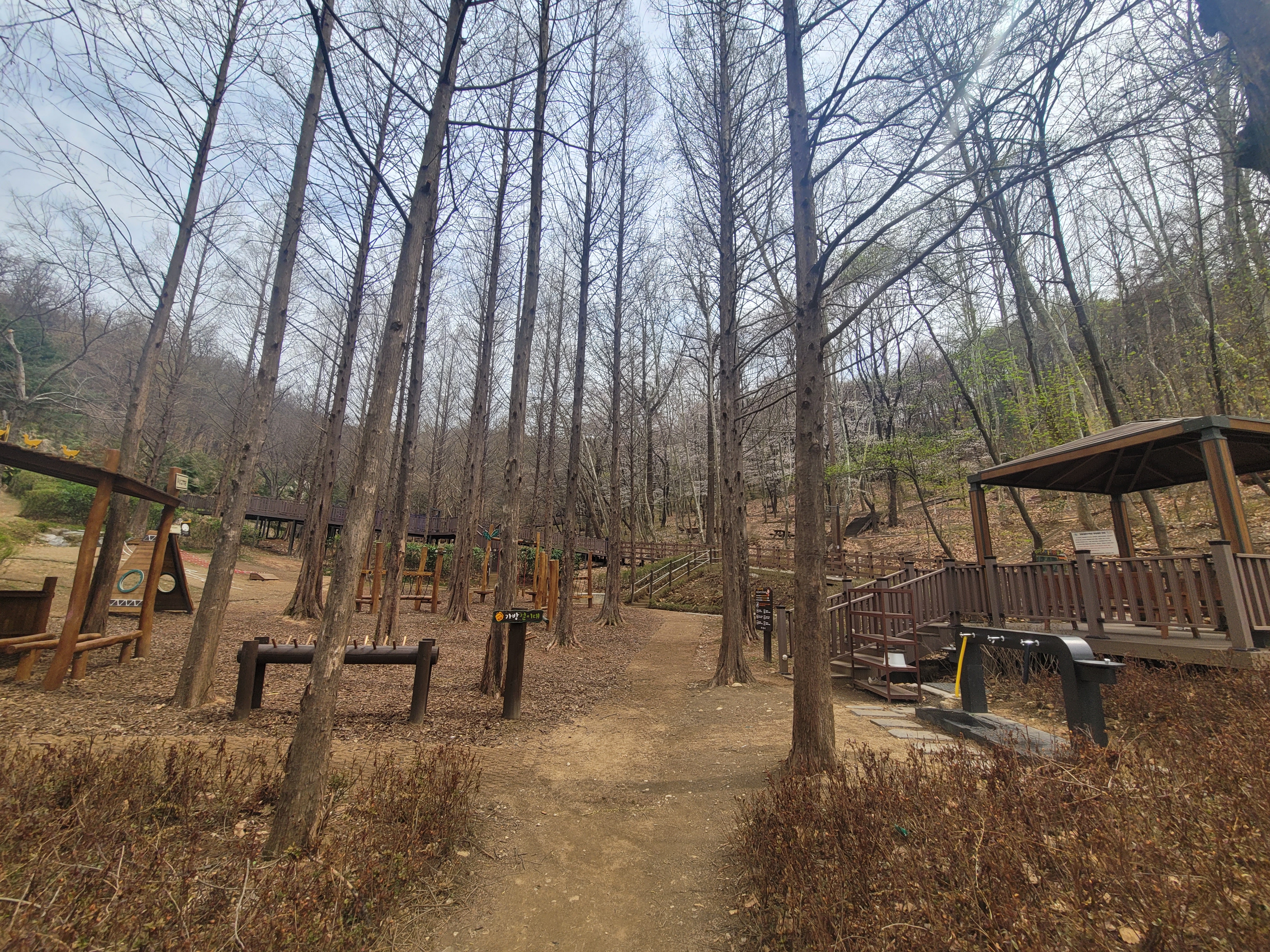 체험장에서 10분 정도 오르면 나무 놀이 시설 위치