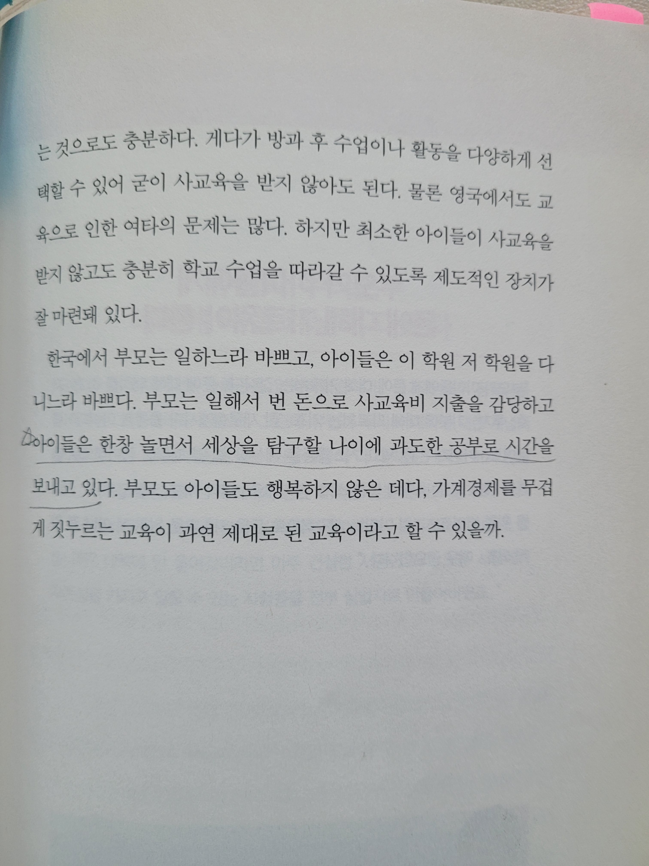 하지만 최소한 아이들이 사교육을 받지 않고도