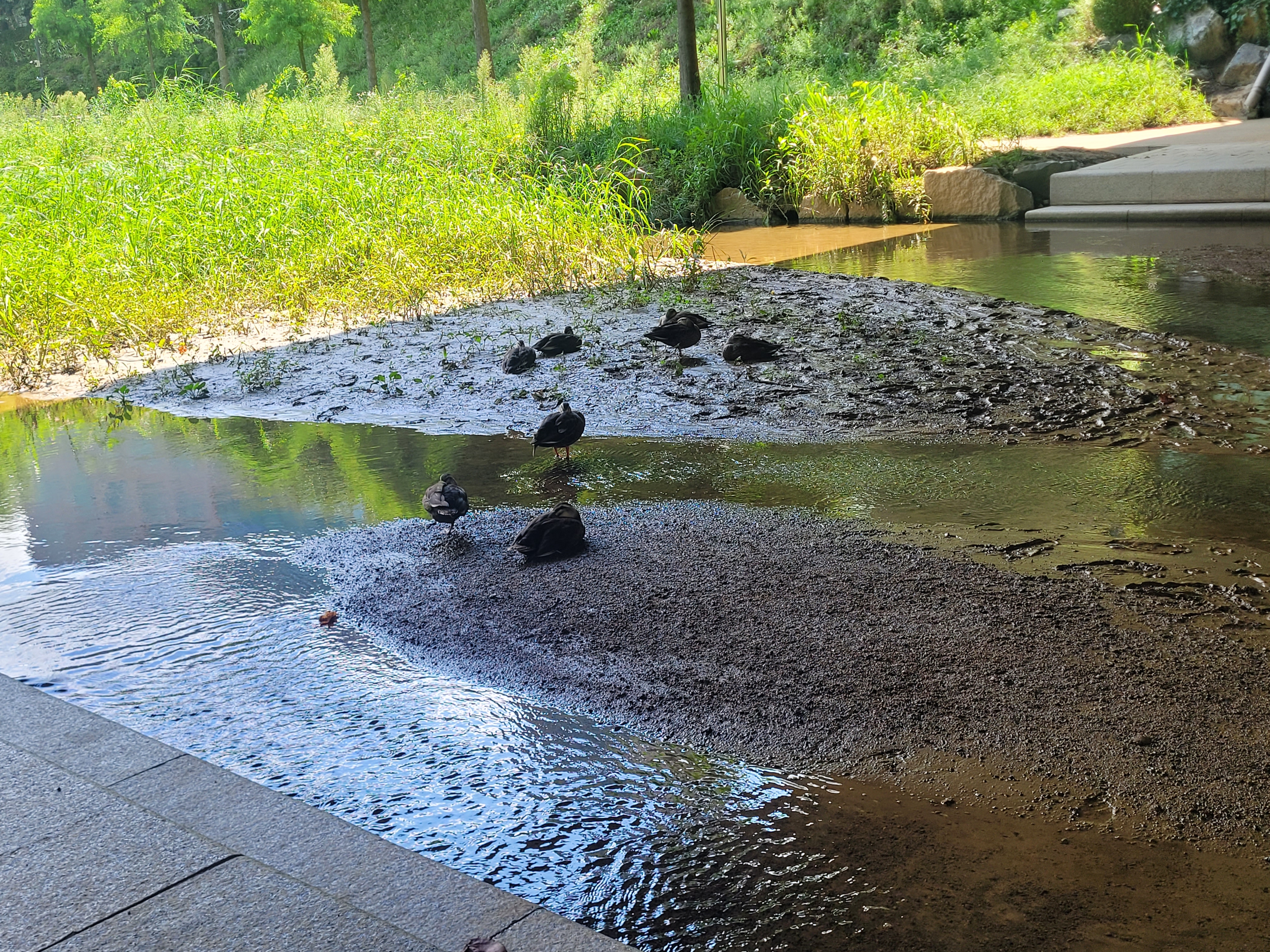 탁한 물이 어딘가에서 흘러 들어온다