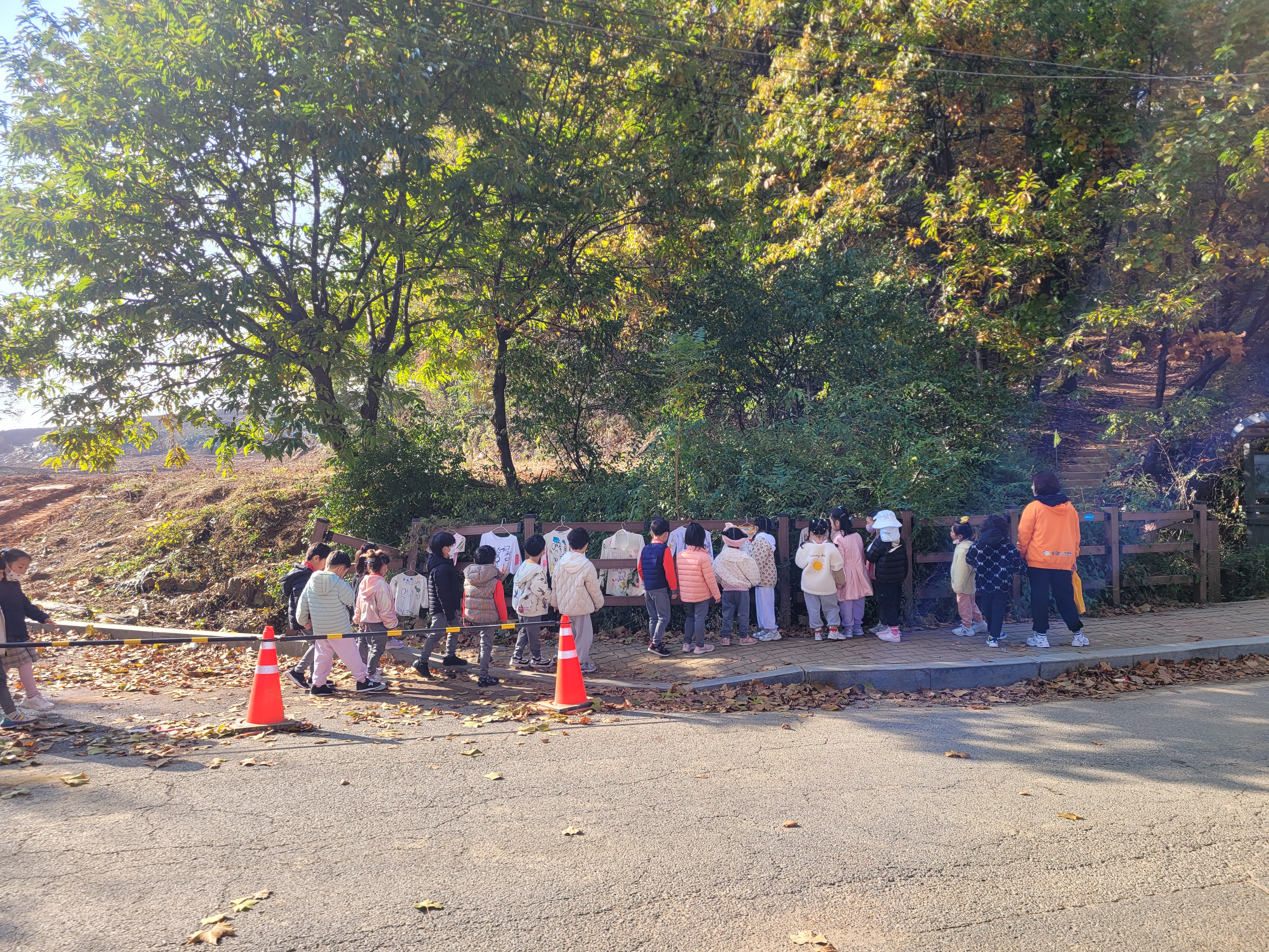 지나가다 습지 지킴이 옷 구경하는 아이들