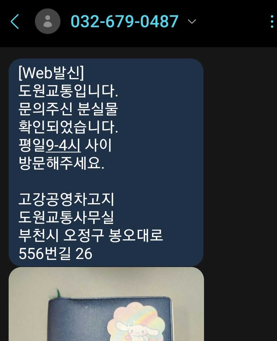 월요일에 통화하니 습득 확인 되어