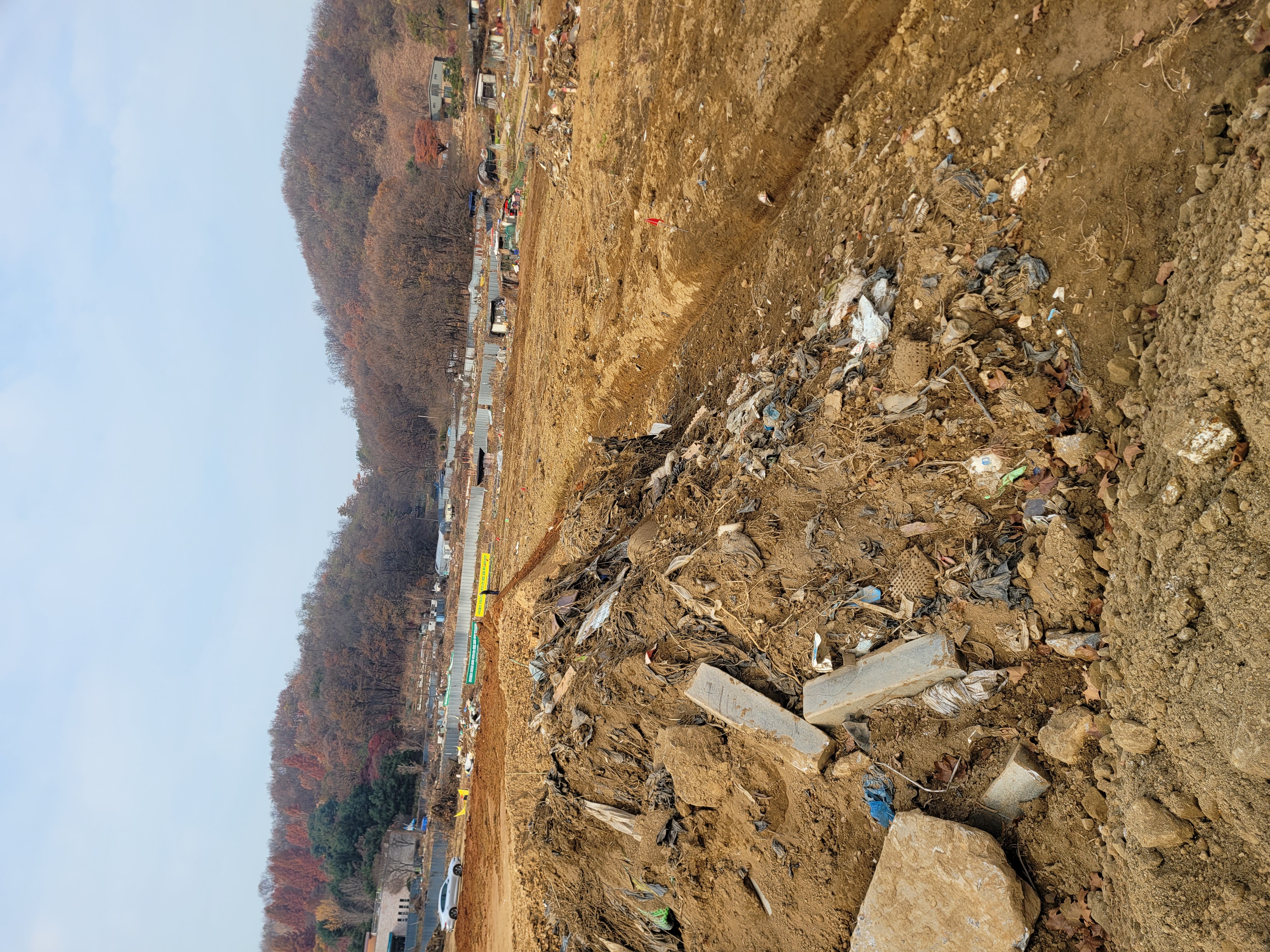 흙 높이가 도로보다 높다