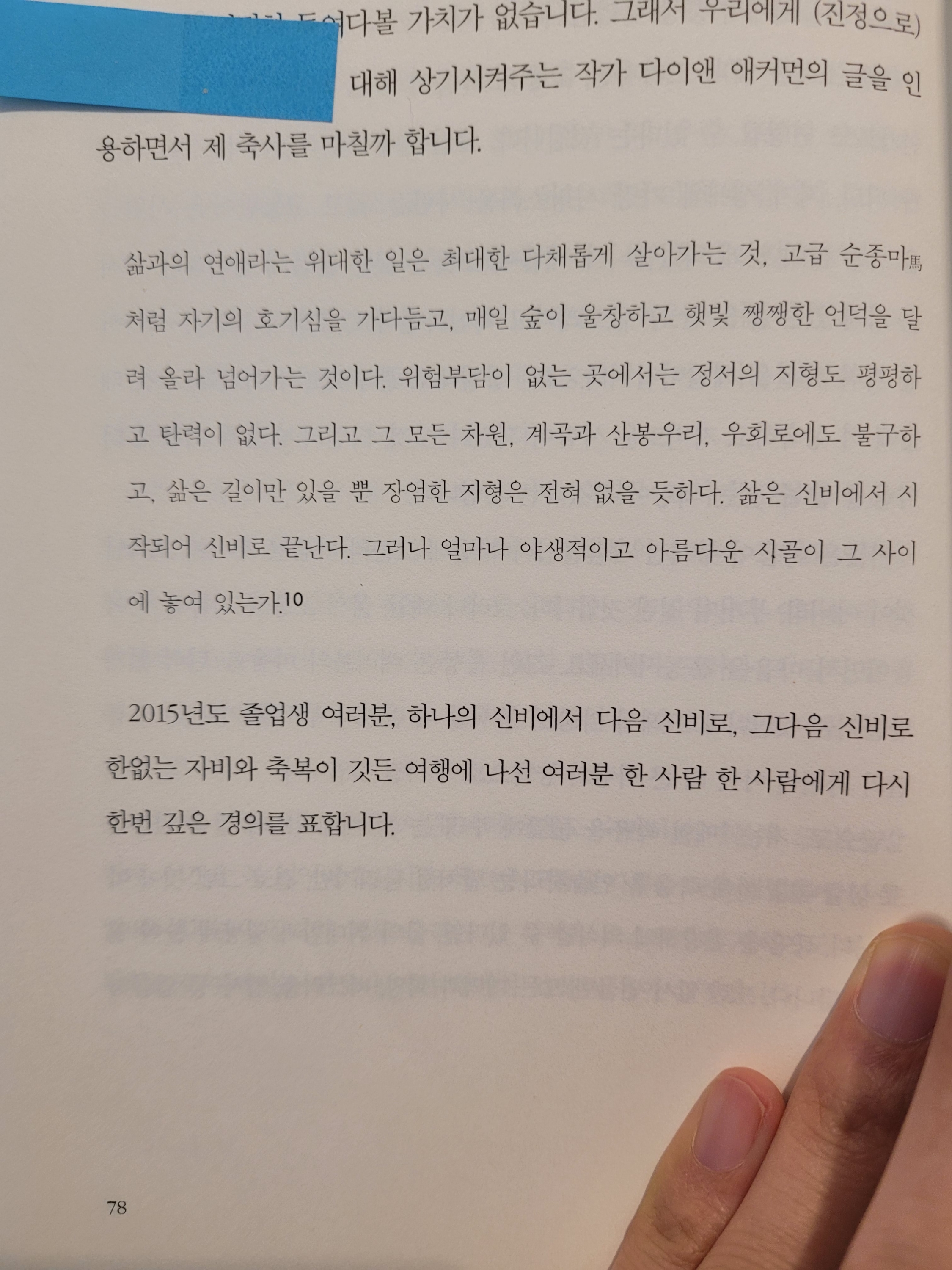 작가 다이앤 애커먼의 글을 인용하면서 제 축사를 마칠까 합니다.