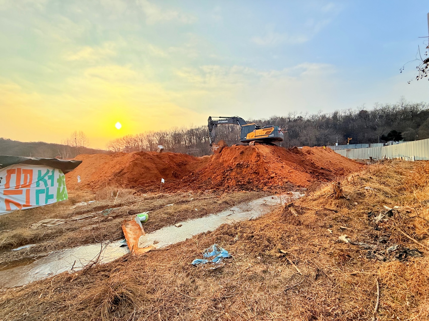원상 복귀를 하면서 굴착기와 트럭이 왔다 갔다 하면서도 밟히고